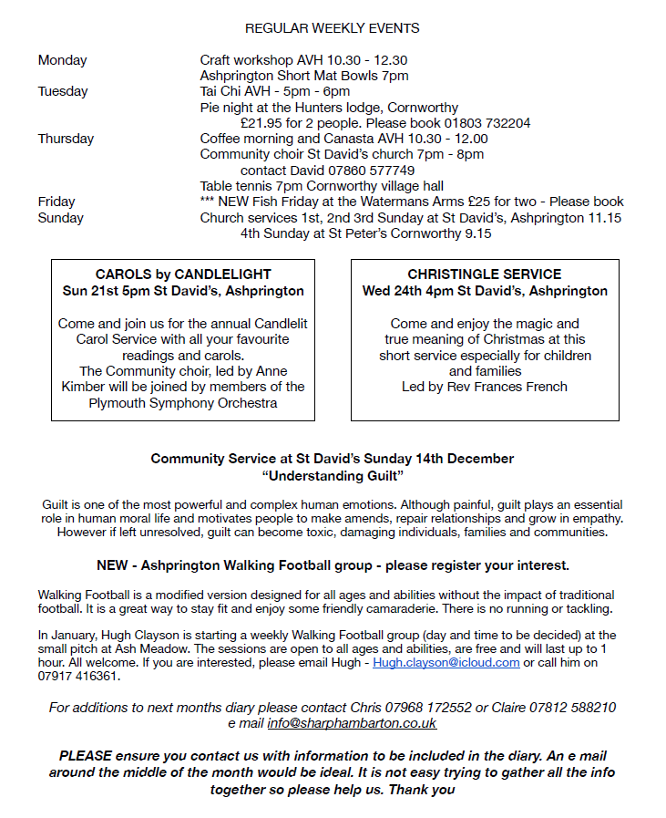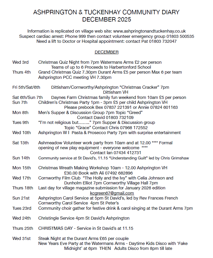 As the festive season commences, find key dates for your diary for December 2025 and beyond, kindly compiled by Community Connectors volunteers across the parish.