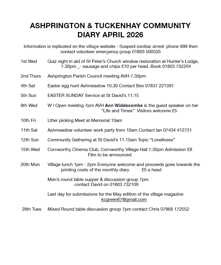Community Connectors dates for April 2026 Apr 1, 2026 | Events & Activities, Featured, General News | 0 comments Key dates for your diary for April 2026 and beyond, kindly compiled by Community Connectors volunteers across the parish.